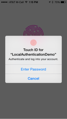 Note: The applications that use the kony.localAuthentication APIs must be in the foreground. If an application uses kony.localAuthentication APIs, the application should handle errors and respond properly with the UI to ensure an alternative method for logging on to the application.