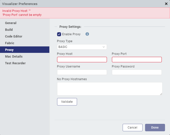 - In the No Proxy Hostnames text box, enter the URL of the domain that must bypass the Proxy server. You can also provide a list of URLs separated by commas.