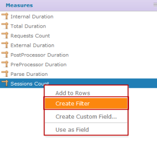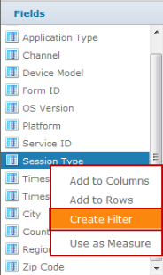 - Filter a Chart - Right-click a field in the Data Selection panel or the layout band and select Create Filter.