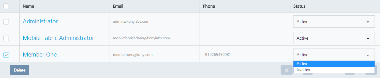 - To inactivate a member, under the Status column, select the check box next to the Member's name in the list view.
