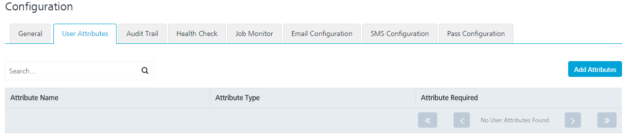 - In the User Attributes home page, click the Add Attributes button to add new user attributes.
