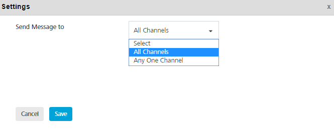 The Settings window appears on the page. By default, the Send Message to drop-down list is set to All Channels.
