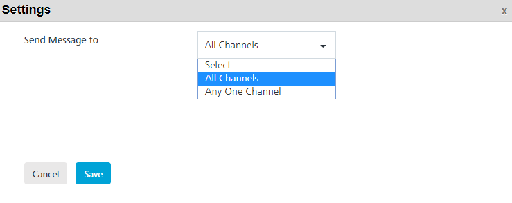 The Settings window appears on the page. By default, the Send Message to drop-down list is set to All Channels.