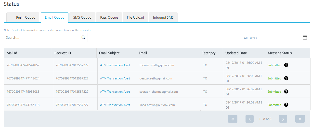 The Admin sets the email message as priority one, push message as priority two, and SMS as priority three. When the event is triggered, the email message is sent successfully. Therefore other channels, push message and SMS message are ignored. The following image displays that the email message is sent successfully.
