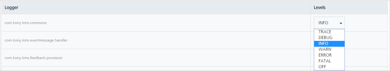 - System displays the confirmation message that log level is updated. The updated log-level appears in the list-view.