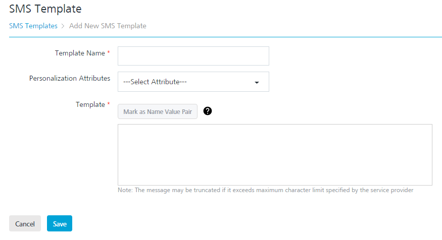- If you do not want to add the SMS template, click Cancel to close the window. The system displays the SMS Template home page.