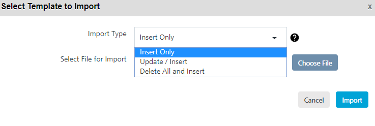 - Insert Only: By default, the Import Type option is set to Insert Only. The option reads the data in the file and inserts SMS templates in the Engagement server. If insert fails, the system displays an error.