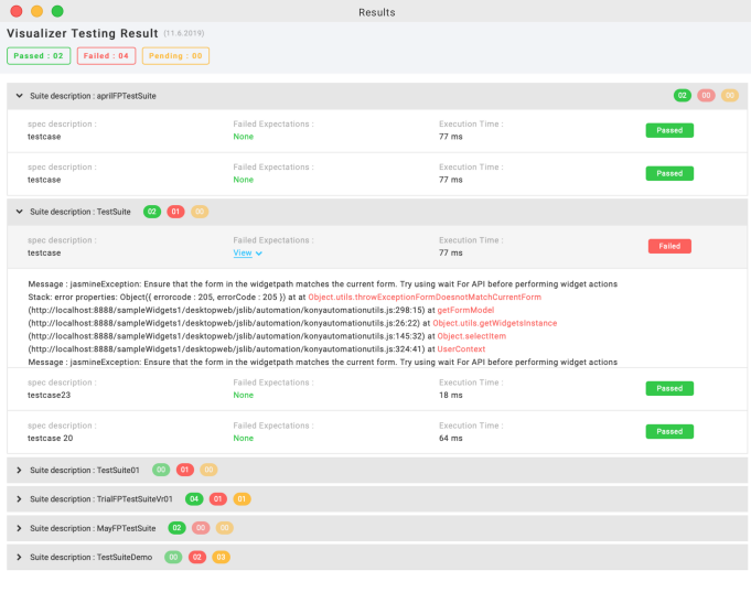 From V9 onwards, Quantum Visualizer introduces the test automation feature using which you can leverage the capabilities of the Jasmine test framework to record activity on an application and generate test scripts. Further, you can edit the recorded test script by adding certain actions such as Wait, Assert, and Scroll to Widget. Once you configure the actions, you can run the generated test scripts using the Live Preview option in Visualizer on your system, or on a mobile device to test the application.