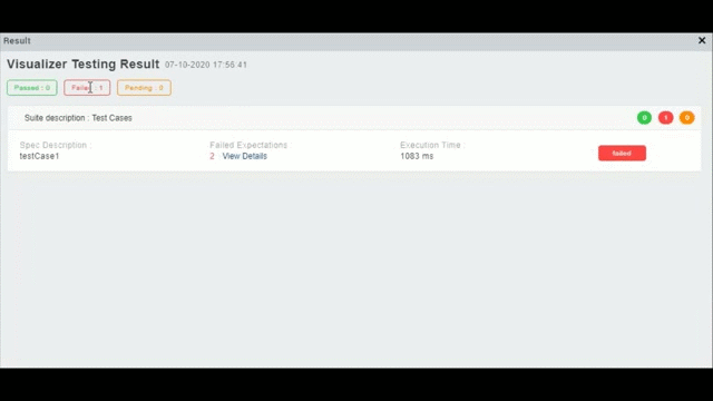 • When you minimize the Test Case Recorder window while playing a test case, a progress bar appears in the Test tab indicating the progress of test case being played. Once the test case is played completely, a toast message appears on the lower-right of Visualizer.