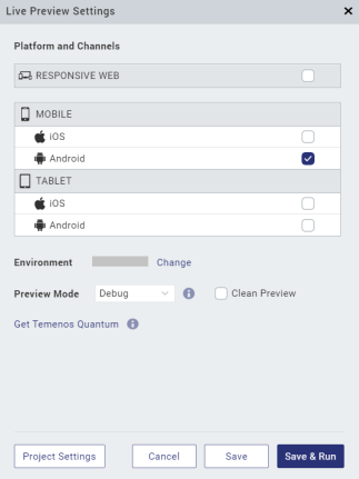 If you want to connect to a native device instead of viewing the app using live preview, ensure that your system and the device on which you want to run the app are on the same network.