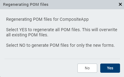 • If you try to generate the Page Object Model files for a channel that already has Page Object Model files, Quantum Visualizer displays a prompt to regenerate the Page Object Model files in the Regenerating POM Files dialog box.