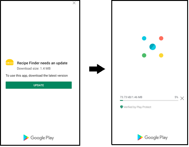 Here is an example flow of the immediate app update approach: