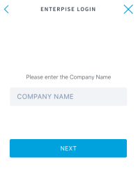 • If your company has a custom authentication arrangement with Kony: tap Enterprise Login, enter your Enterprise Identifier/ Company Name, tap Next, enter your Kony credentials and tap Sign In.