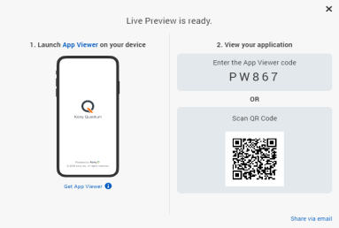 NOTE: To email information about the preview to a recipient, click the email icon . Included in the email is the App Viewer ID, and for each platform, the preview's name, short notes, and timestamp.