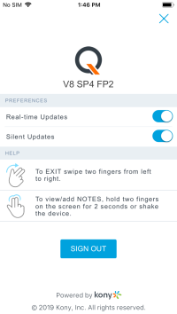 2. If necessary, provide your Kony account credentials on the sign in page, and then tap Sign In. The Quantum App displays its home screen.