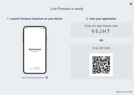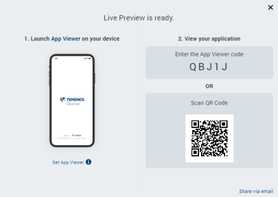 NOTE: To email information about the preview to a recipient, click the email icon . Included in the email is the App Viewer ID, and for each platform, the preview's name, short notes, and timestamp.