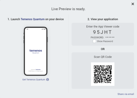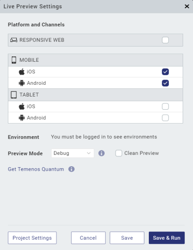 From Quantum Visualizer V9 SP2 FP7, you can login to the Quantum App by using Temenos cloud credentials. Existing developers using the Kony cloud as well as new developers using the Temenos cloud can preview apps on the Quantum App.