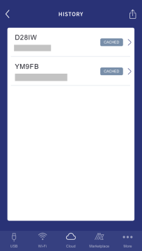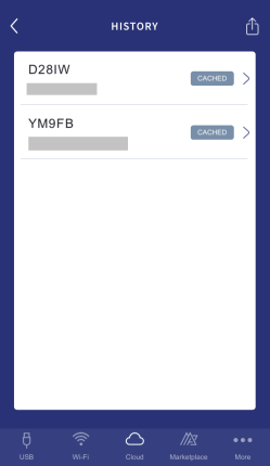 Alternately, you can tap the History icon at the bottom of the screen to see a list of previews previously viewed on the device. If you have signed in by using your Quantum credentials, previous preview can be stored on the cloud and can be accessed on any device by using the same cloud credentials. If the preview is cached locally on the device so that it can be viewed without a wireless connection, the preview's listing includes a Cached status. If the preview has an update available for download, its listing includes an Update status.