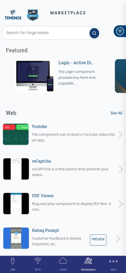 Once you launch the Quantum App on your device, you can access Quantum Temenos Forge and view components and applications available in it. You can browse and launch Temenos Forge applications that interest you on the Quantum App.