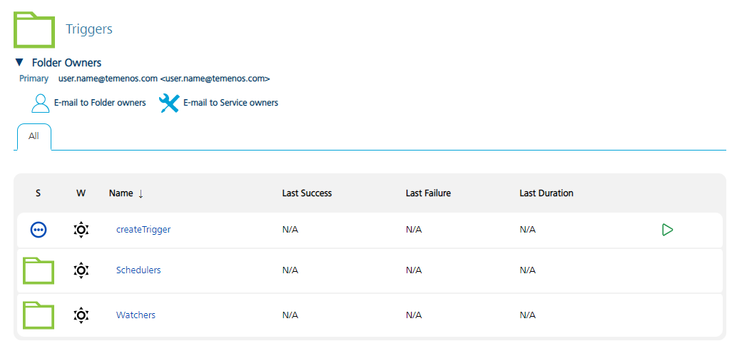 - In the Triggers folder, click the build icon for the createTrigger job.