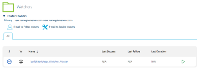 Jobs that are triggered by a push to the SCM are stored in the watchers folder. Every Watcher includes the branch in the name of Job to simplify searches.
