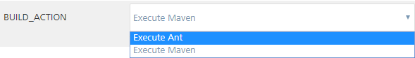 You can run an Ant script or a Maven script. The Build Action parameter is set to Execute Ant by default.