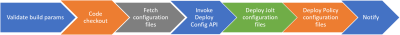 The ConfigureMS job pulls the policy and jolt files from the provided repository, and then deploys them to the configuration Microservice with an API call. The job is divided into the following steps, which the build pipeline performs during the build process.