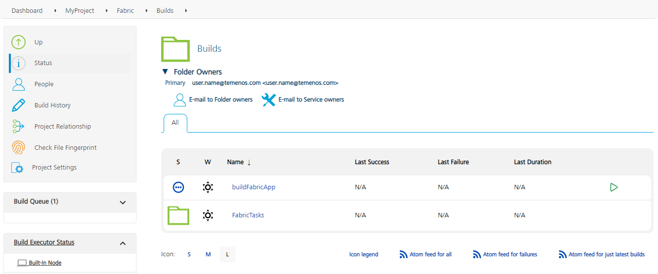 The Builds folder contains the buildFabricApp job, which orchestrates the build and publish logic of a Fabric app to the Quantum Fabric environment.