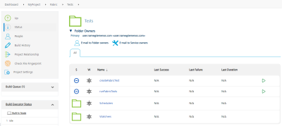 The Tests folder contains jobs to create and run tests. It also contains sub-folders that store the created tests based on the trigger mechanism.