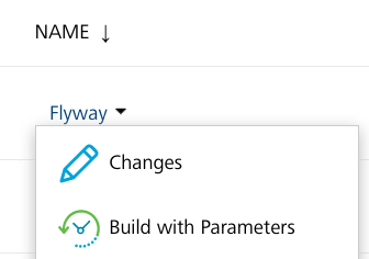 - Open the drop-down list (context-menu) for the Flyway job, and then select Build with Parameters