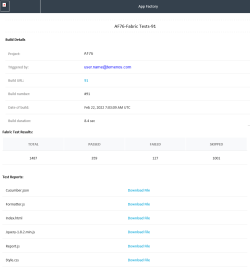 App Factory supports two types of auto-triggered test jobs: scm-triggered (Watchers) and cron-triggered (Schedulers). Every project contains a folder called Tests in the Fabric sub-folder, which contains a job for creation of auto-triggered jobs (createFabricTest) and two sub-folders where the created jobs are stored.