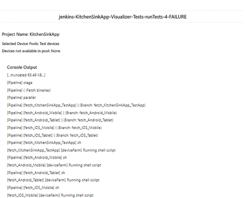 For more information, refer to Configuring Device Pools. - Jasmine tests are executed in the AWS Device Farm Cloud environment.