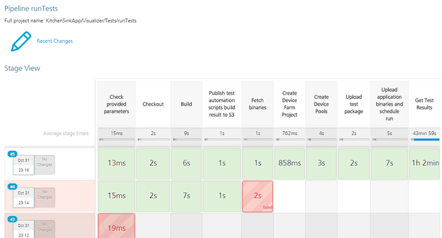The builds that failed during the test can be tracked for the issues that caused the failure. For example, consider build #4 from the following screenshots of runTests job. To troubleshoot the issue, follow these steps.