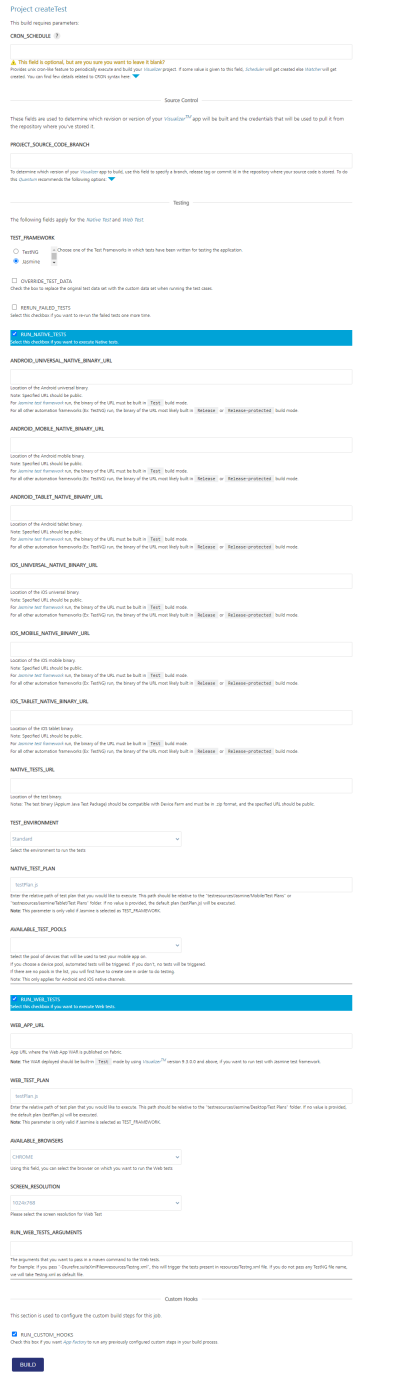 Solution: The universal binary tests both the Mobile and Tablet binaries are based on the availability of the devices in the device pool. So it is not required to provide mobile/tablet binary when you give universal binary. - Error: Build parameter <parameter name> value is not valid URL!
