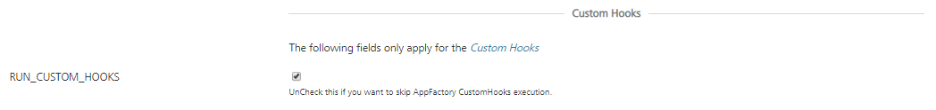 Custom HooksParameter Description RUN_CUSTOM_HOOKS