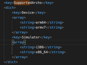 The SupportedArchs key is a dictionary that contains the details of the architectures used for the device and the simulator.
