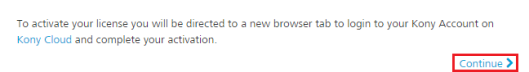 - Enter your Kony account credentials and click on Sign in. After your credentials are validated, you will be redirected to Licensing Activation page.
