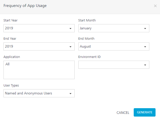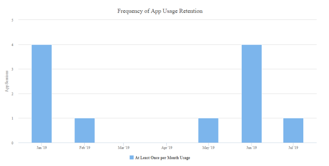 Frequency of App Usage report provides information about the usage of native application based on the frequency of usage. You can also view the users who used the app at least once per day, week, or month.