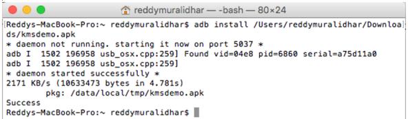 - After the binary has been downloaded on to your machine, connect the device to the computer and run the adb command to install the binary.