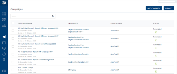 - Next, we will set up a campaign that will use this segment. To set up a campaign, click Campaigns under the Engagement section.