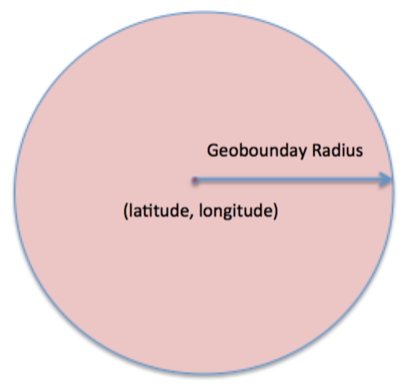 A geoboundary is an area that is defined by a circle which has the latitude and longitude as the center with a radius. This radius is called as the geoboundary radius.