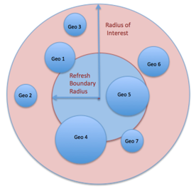 The figure below shows the refresh boundary, which includes some of the geoboundaries with in the radius of interest.