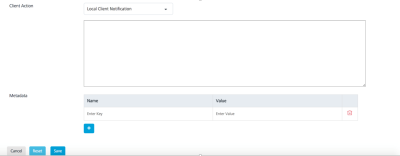 - Choose the Local Client Notification as the client action. The system displays a text area where you can enter a local notification message can be entered.