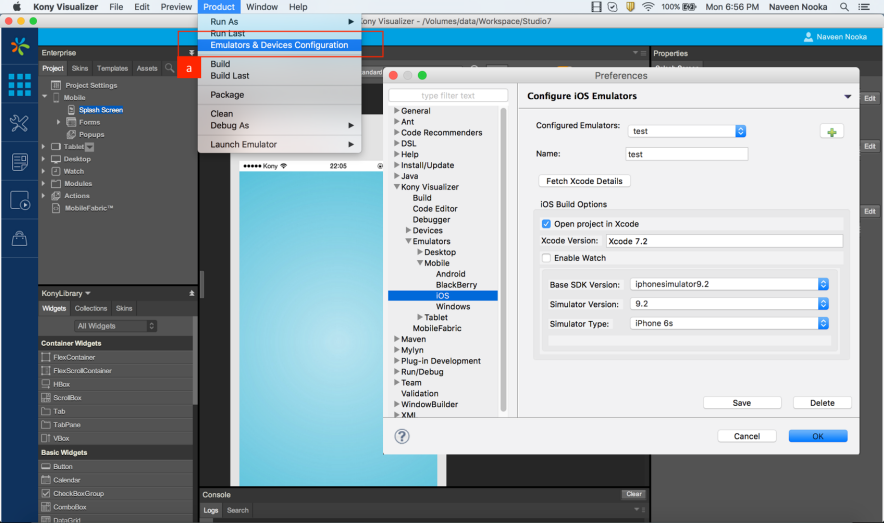 To Jump back to Visualizer Canvas from MobileFabricâ„¢ console click on the workspace icon.